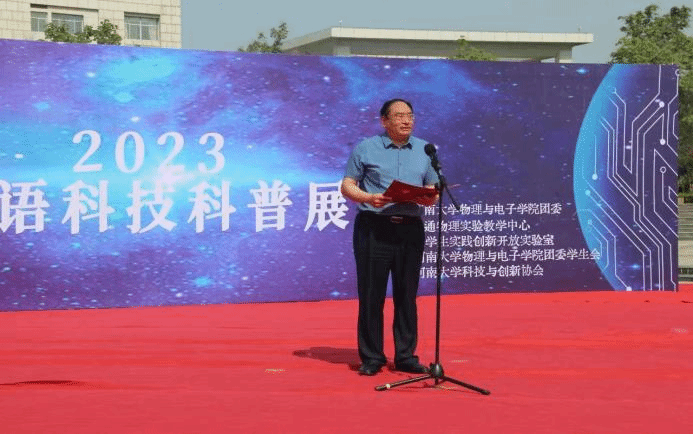 校党委常委、副校长孙君健教授致开幕词。他指出党和国家高度重视科技创新和科学普及,科普事业是我国从科技大国走向科技强国的基石,大学是科普工作的主阵地,科普工作是科研工作者义不容辞的职责所在。他高度赞扬了JAV777 在JAV777 科普事业中的努力和付出,并鼓励学院以科普展为契机进一步推进科普事业发展。学生代表2019级物理学于宏博同学讲到,作为新时代大学生要努力学习专业知识,积极参加科学研究和科普活动,不断提高科学思维和科学探究能力。