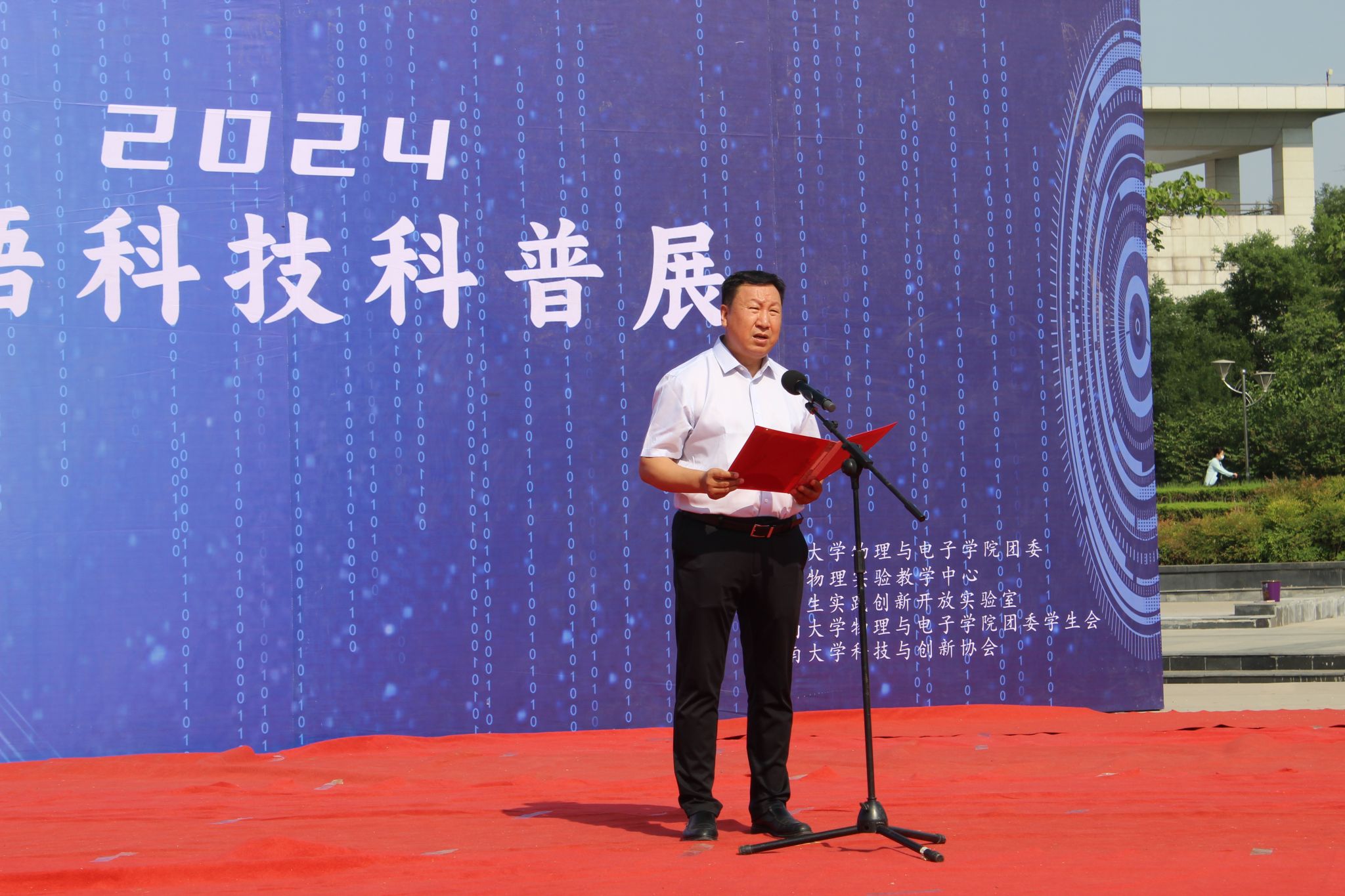 在金明校区马可广场举办了第七届物语科技科普展。副校长苗雨晨教授,相关职能部门负责人、学院师生代表出席了活动开幕式。党委副书记刘寒冰主持本次开幕式。