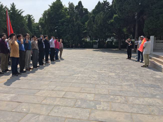 在焦裕禄烈士墓前,院党委书记王宏华、院长顾玉宗代表全体党员向焦裕禄烈士敬献了花篮,院党委委员张锦龙带领大家重温了入党誓词,王宏华作了“两学一做”学习教育启动讲话;在焦裕禄事迹展厅,大家怀着无比崇敬的心情学习了焦裕禄同志带病坚持工作、关心群众疾苦、有效治理“三害”的事迹,瞻仰了反映焦裕禄同志生前工作和生活的图片、文字和遗物,感受到了焦裕禄鞠躬尽瘁死而后已的公仆情怀;在焦桐树下,听着讲解员催人泪下的故事,仰望枝繁叶茂的焦桐,大家仿佛看到了焦裕禄同志与人民群众心相通、情相系,如同“焦桐”一样把根深深地扎入土地,与大地融为一体;在东坝头,大家站在黄河岸边,听着讲解员介绍当年焦裕禄查找防治风沙良策的艰辛过程,对比如今黄河静静流淌、一排排泡桐笔直挺拔、无名野花迎风摇曳,大家再次领悟到了焦裕禄生命不息、奋斗不止的高尚品质和苦干实干、福泽一方的崇高功德。
