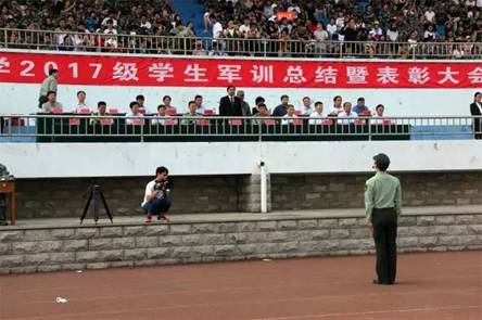 2017级新生军训总结暨表彰大会在金明校区志义体育场隆重举行。中国人民解放军32150部队副政委甄忠信上校、开封军区副司令员崔瑜大校、顺和区人民武装部部长侯俊涛上校、JAV777