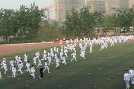 学子们的共同努力,他们曾冒着清晨凛冽的寒风,也曾顶着正午毒辣的烈日,在训练场上认真琢磨每招每式。那些伴着清晨寒气、正午骄阳和黄昏彩霞的练习,使得选手们的动作一天天娴熟,队伍一天天趋于整齐,最终成就了行云流水、百人如一的境界。也正是太极,让大家有了一个共同的目标,为了同一份荣誉团结在一起。