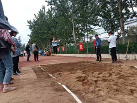 的跳远健将,他们蛟龙似的起跳,腾飞于蓝天白云之中,又轻盈落下,如猛虎跳涧,引来阵阵喝彩。