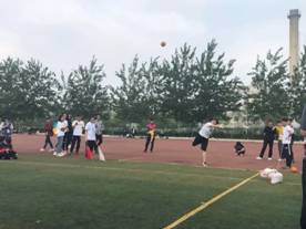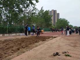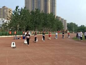在操场另一侧,时时有优美的弧线划过,那是推实心球的比赛!沉甸甸的实心球,被运动员奋力一抛,一道锋利的弧线一闪即逝,仿佛要划破天空。而随着实心球的落下,观众们悬着的心也落了地。