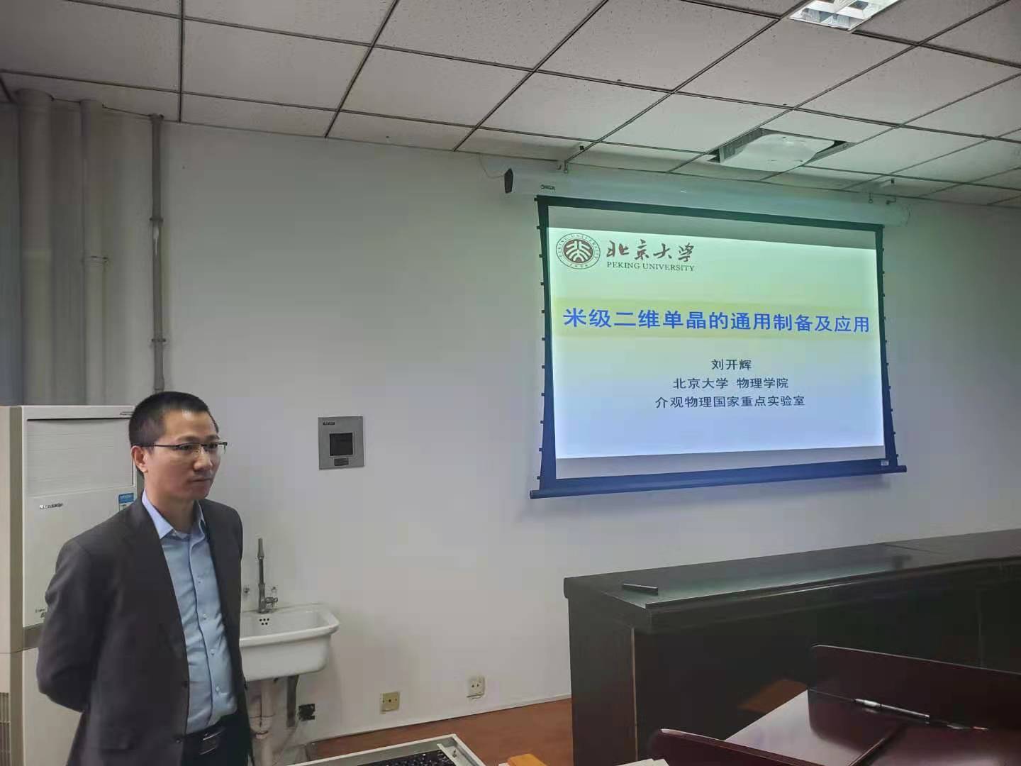 刘开辉教授从课题组的主要研究方向出发,介绍了近几年在在界面调控二维材料超快生长设计、米级二维单晶制造、二维材料光纤器件方向的研究进展。单晶材料是当代高科技的核心基础材料,从第一代半导体的硅、第二半导体的砷化镓到第三代半导体的氮化镓无不推动了器件性能的巨大提高。21世纪的高科技发展需要依赖于新型单晶材料的开发和制造。量子材料,包含二维材料、拓扑材料、超导材料等,是非常有望带来颠覆性应用的新型单晶材料。在本次报告中刘开辉教授以二维单晶制备的新科学问题展开,分别从速度(单核快速长大)、衬底(单晶衬底制备)、取向(多核协同生长)三个方面系统介绍了如何在原子表界面环境中制备大尺寸二维单晶。同时介绍了发展的材料和技术有望在电子器件、光学器件、声学器件、光电催化、热管理工程等领域的应用。最后,刘开辉教授与在场的师生就感兴趣的问题进行了深入的讨论以及细致的讲解,给学生开拓了科研视野,为广大师生提供了宝贵的科研思路。