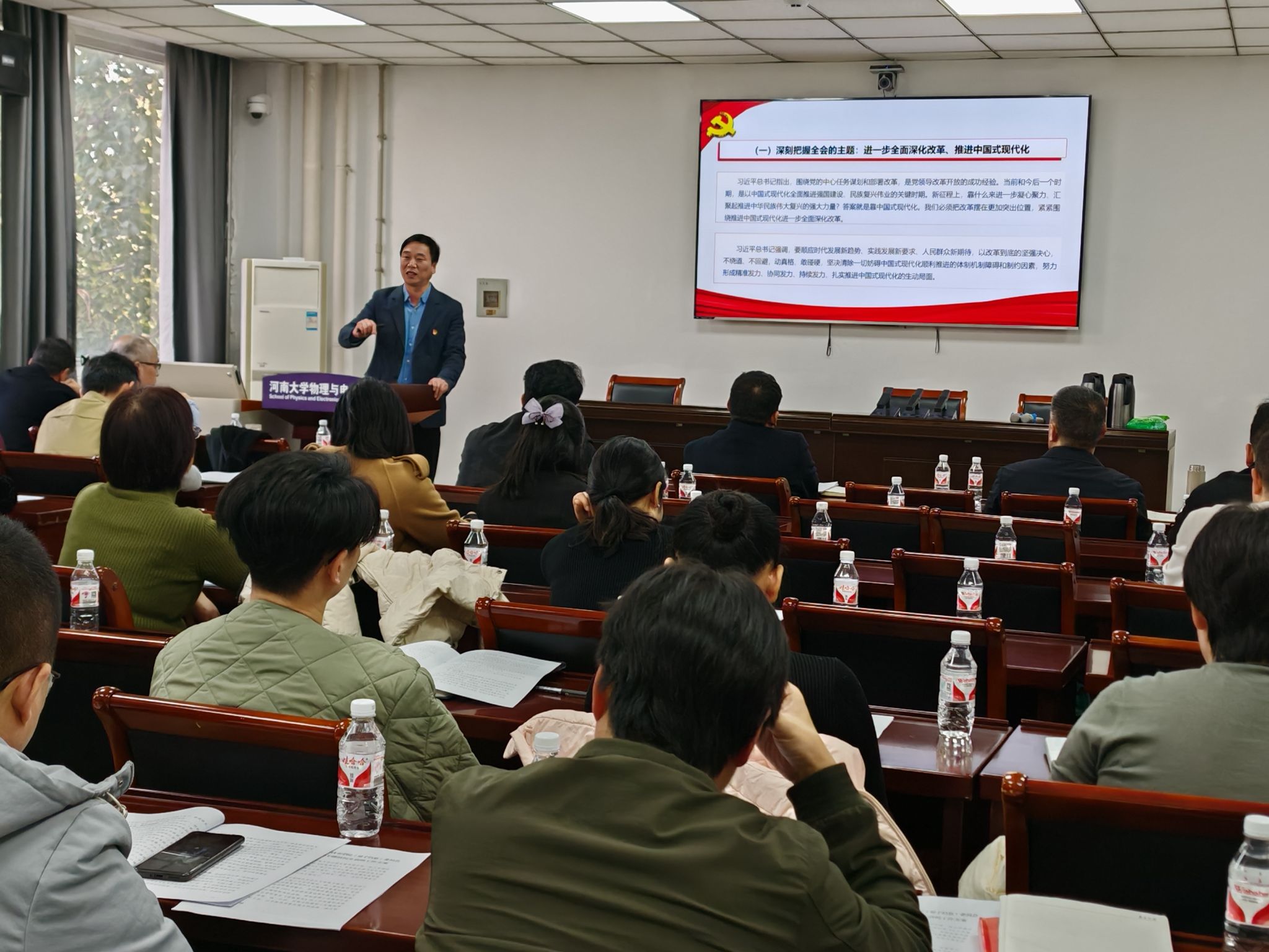 与未来技术学院(量子信息)学院党委委员、领导班子成员、组织员、各党支部书记、教工党支部委员以及系室中心主任和师生代表等参加会议。会议由学院党委书记张慧主持。