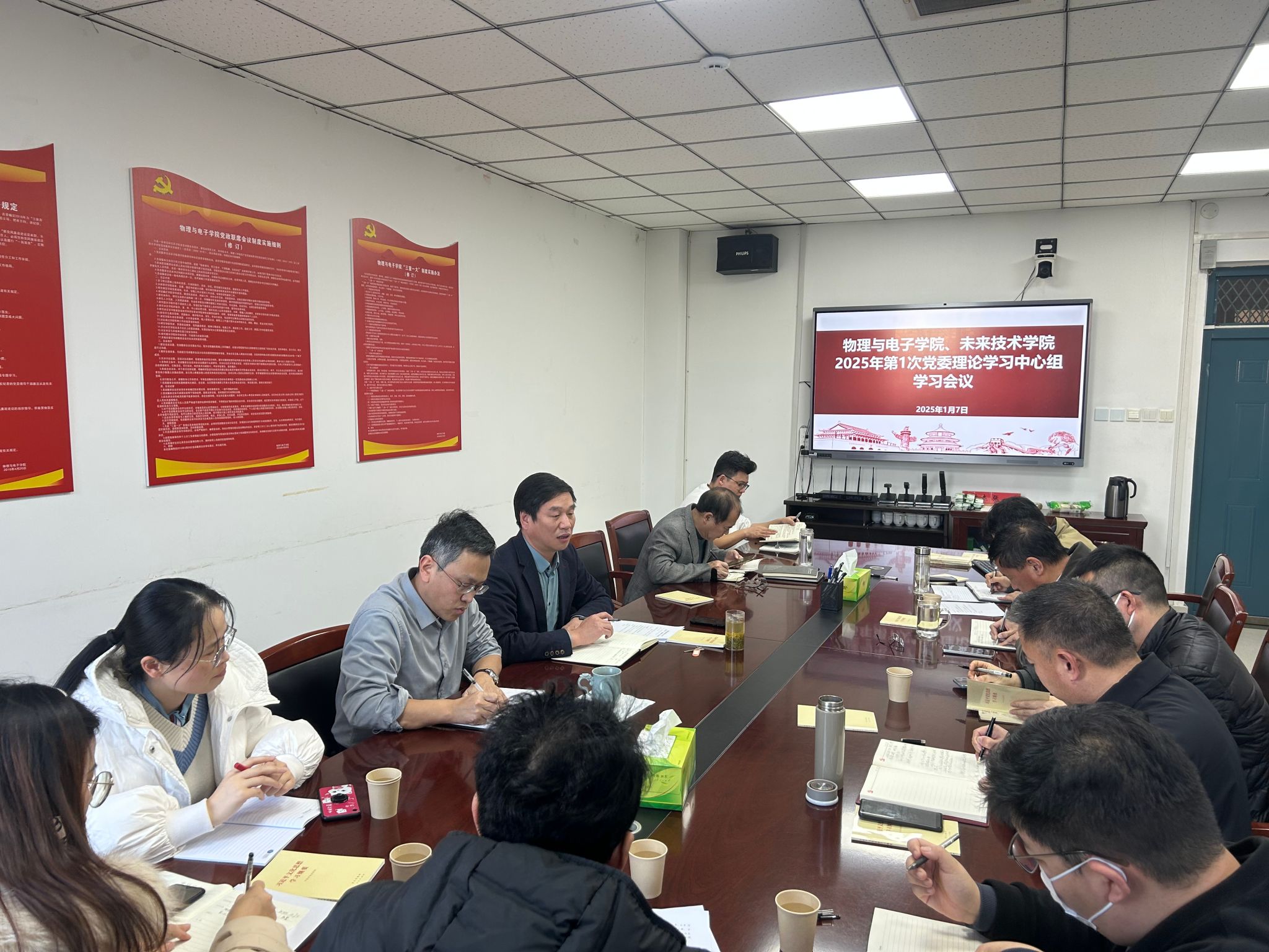 、未来技术学院(量子信息)党委理论学习中心组在学院A311会议室联合召开2025年第一次集体学习会议,学院党委委员、领导班子成员、组织员及党员代表参会,会议由学院党委书记张慧主持。