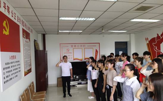 A座309党员活动室,学院党委举行了2019年预备党员宣誓仪式。院党委副书记乔石豪出席仪式并领誓,支部书记、正式党员代表和51名预备党员与会。仪式由学院党办负责人、本科生第四党支部书记孔瑞婷主持。