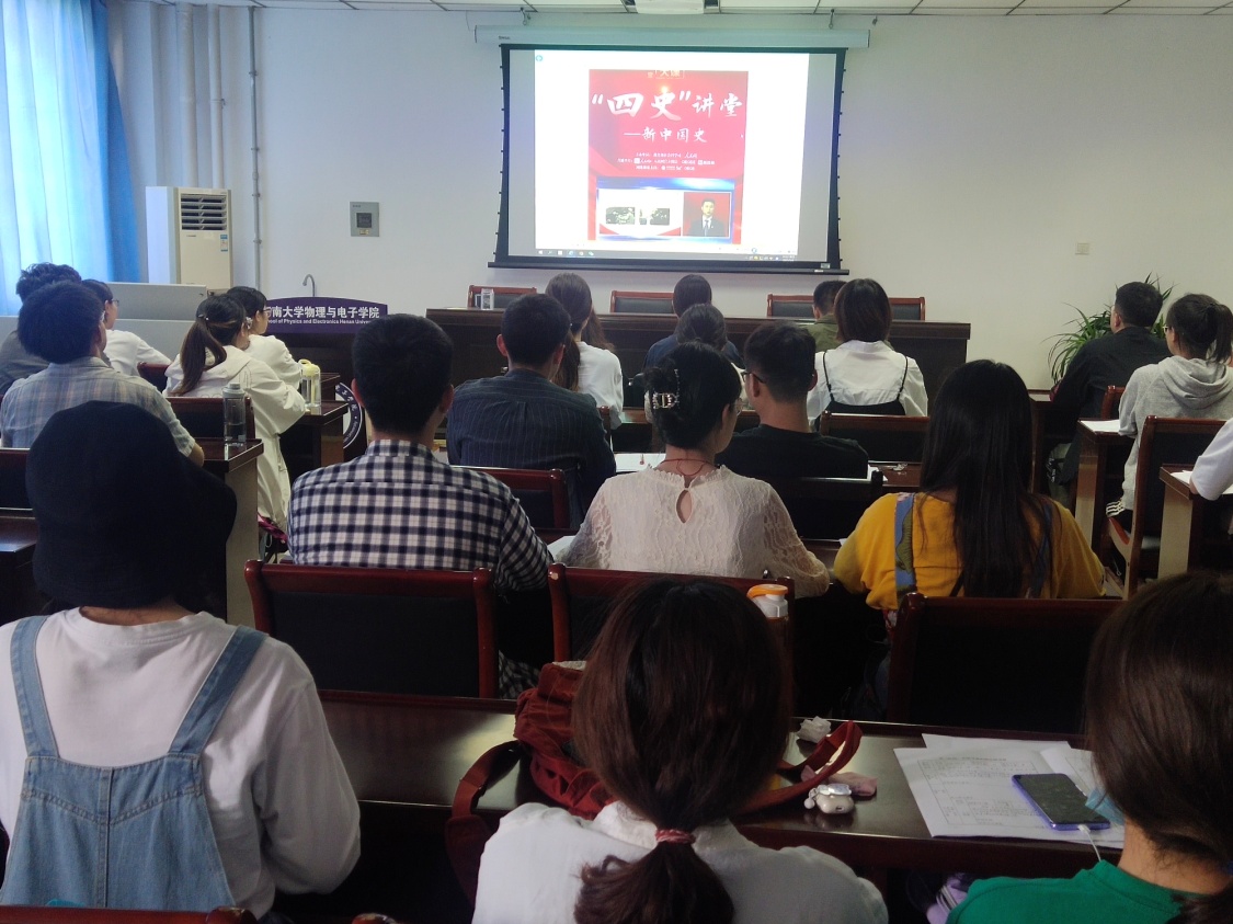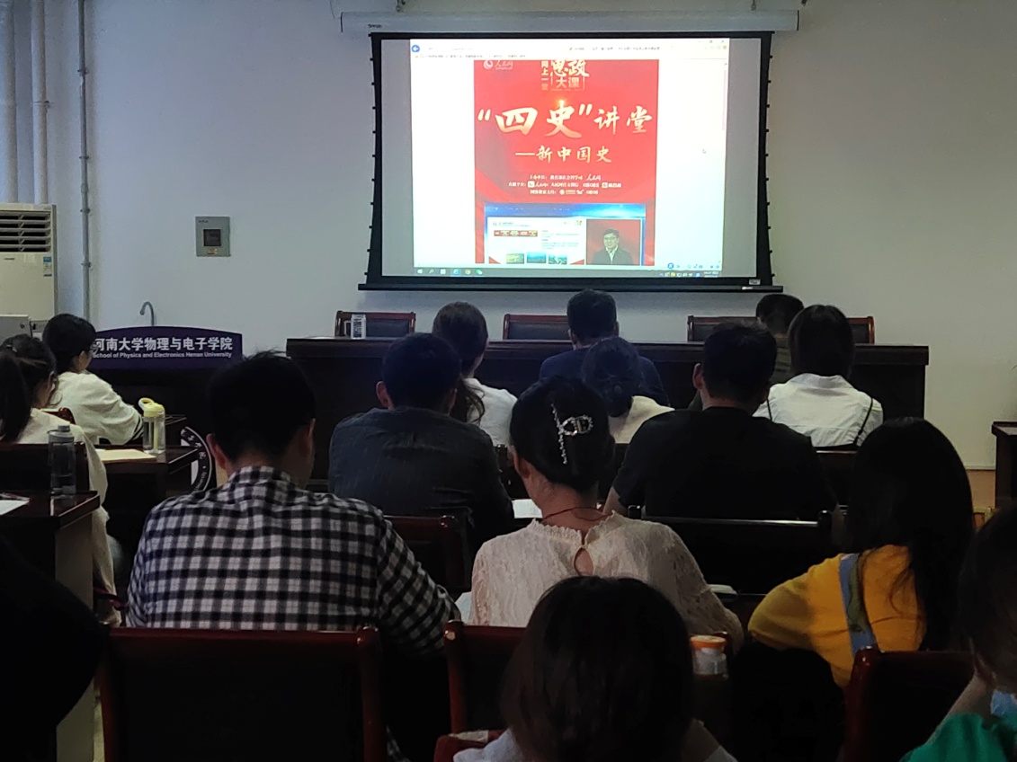 党委在组织大学生在线上观看的同时,组织54名发展对象和20名学生党员代表在学院313会议室集体学习“同上新中国史思政大课”。