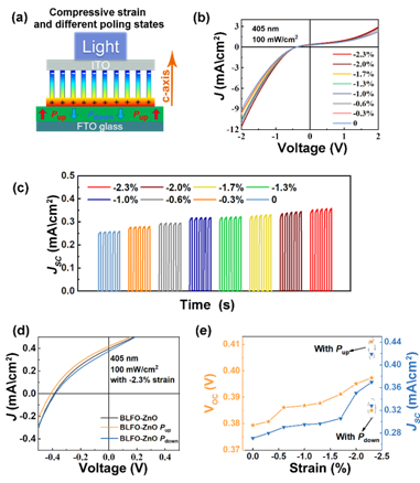 图1通过同时施加压应变和外电场极化提高BLFO/ZnO光伏性能。