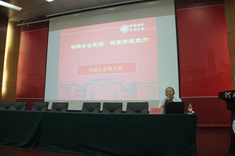 9月2日下午4点,为让学生掌握必备的安全防范技能,增强遵纪守法的观念和安全防范意识,学院邀请保卫处副处长王赛之作了题为《增强安全意识 提高防范能力》的安全教育讲座。他结合亲身经历的具体案例,从国家安全、人身安全、财物安全、交通安全、食品安全、消防安全、网络安全、心理安全等八个方面为同学们做了详细、系统而精彩的讲解,令在座的每一位同学都受益匪浅,提高了同学们的安全防范意识和自我保护意识。
