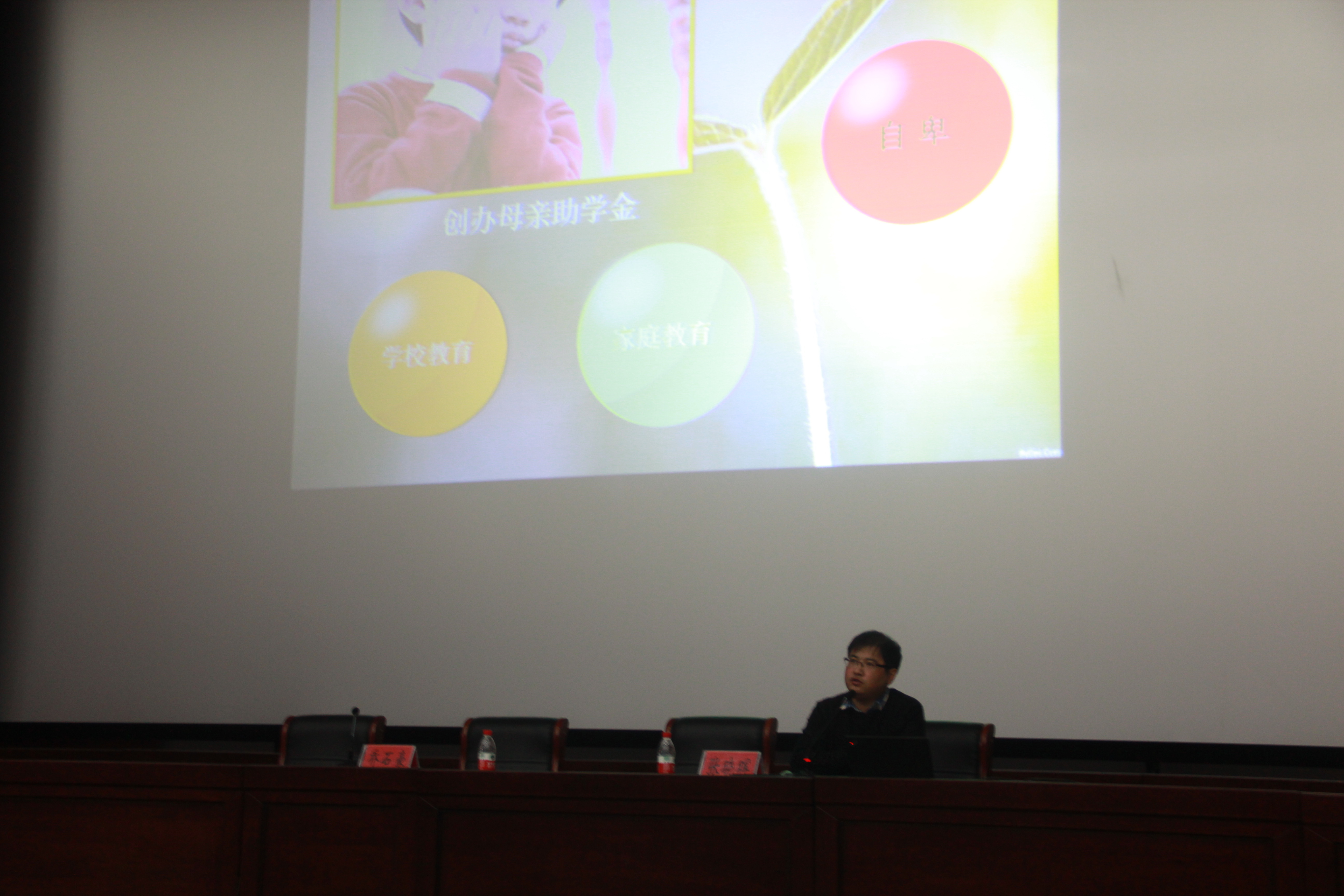 校歌声中拉开了序幕。在讲堂上,一张张珍贵的照片、一节节动人的视频、一段段生动的文字,一句句感人的讲述,真实再现了10年来张晓晖和志愿者们热衷公益事业的道德历程。他们以积沙成塔、集腋成裘的形式筹集善款和物品,以无所畏惧的精神翻越崇山峻岭、趟过湍急溪流,把“母亲”般的爱心传递给贫困地区渴望知识的孩子们。“母亲助学金”发展至今,张晓晖共募集捐款140万元(包括他个人的一半工资20万元),资助了贫困生2000余人次;先后33次带队前往南召山区支教助学;为贫困地区的4所小学建了图书室,3所小学捐赠了体育器材;捐献的7000余册图书让从未走出大山的孩子认识了外面的世界。