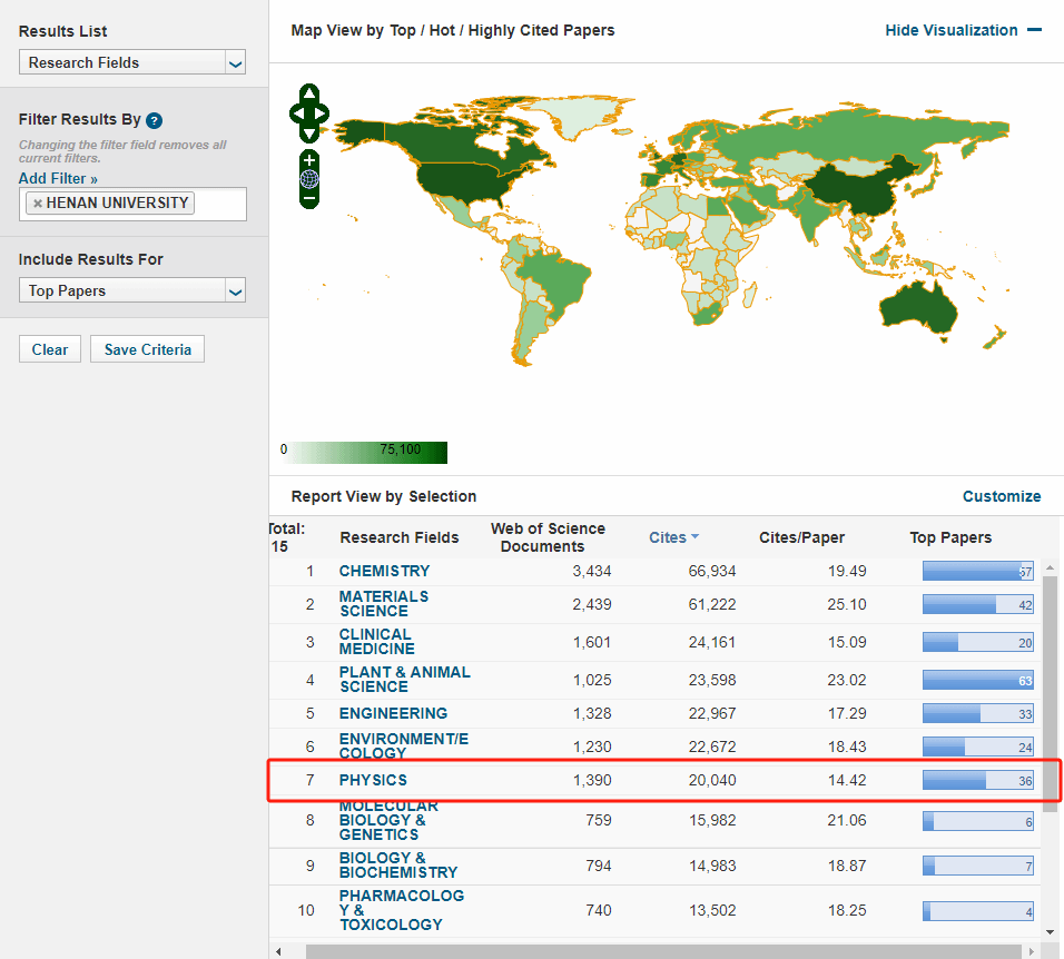 根据科睿唯安ESI数据库(Essential Science Indicators,基本科学指标数据库)5月8日更新数据,JAV777 物理学(Physics)首次进入全球排名前1%行列。JAV777 在物理学学科领域共发表论文1390篇,其中高被引论文34篇,总被引频次20040次,篇均被引次数14.42次。