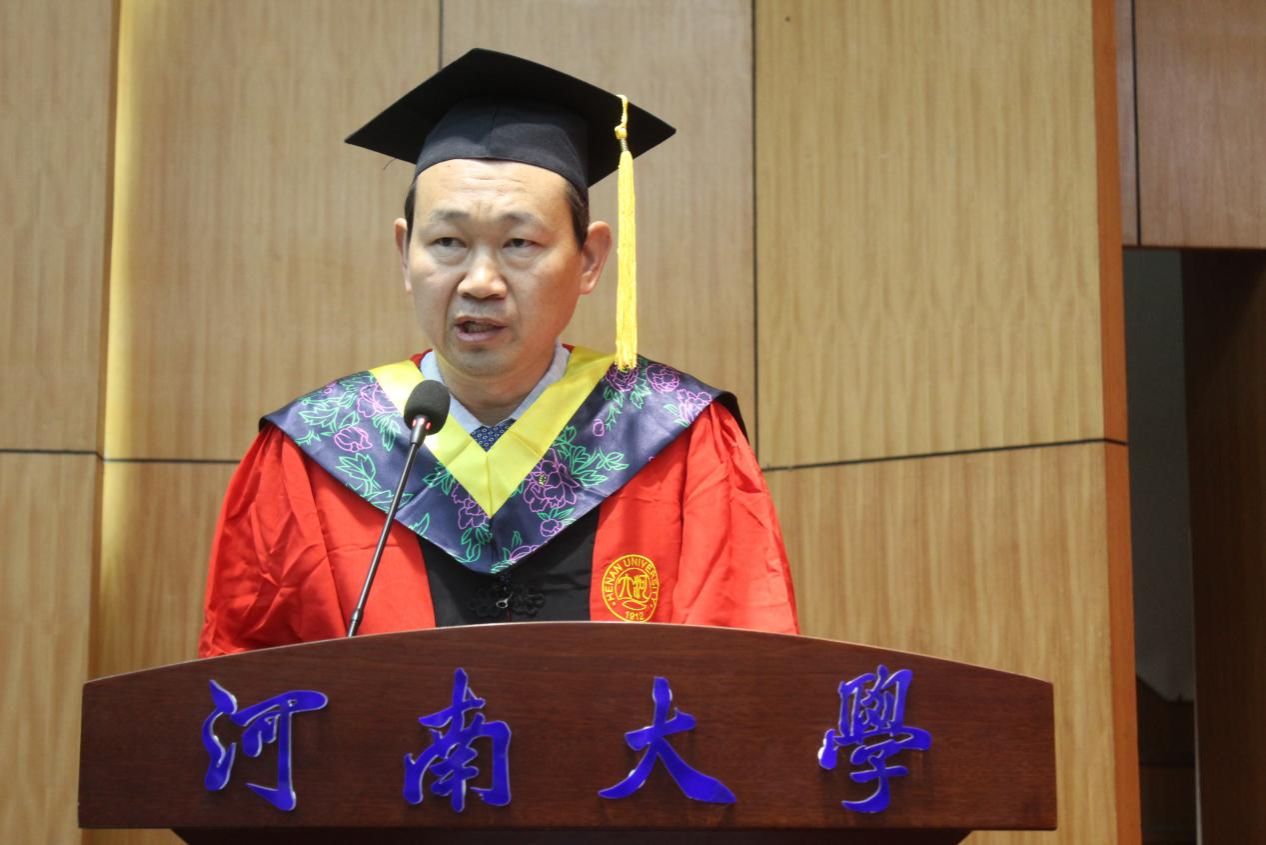 张慧充分肯定了毕业生取得的优异成绩,回顾了同学们与时代同频、与学校共荣的成长历程,以及学院在学科建设、人才培养领域的突破性成就。他指出作为2025届毕业生既是亲历者,更是参与者和贡献者。如今同学们即将奔向星辰大海,开启新的人生篇章。张慧以四句临别赠言与毕业生们共勉:一是持“格物穷理”之心,永葆对未知的好奇与探索的勇气,永怀赤子之心,做真理世界中永不疲倦的探索者;二是秉“明理致用”之志,将智慧转化为推动进步的磅礴力量,服务于国家所需、人民所盼,在建设科技强国和教育强国的伟大征程中刻下河大物电人的印记;三是守“求真务实”之道,用行动践行教育家、科学家精神,奋楫笃行、臻于至善,以科技之光照亮科教发展之路、以实干之光照亮人才成长之路;四是铸“家国情怀”之魂,在强国建设中书写不负时代的青春华章,将个人的职业规划与国家的发展战略紧密相连,心系“国家事”、肩扛“国家责”。最后他希望同学们无论飞多高、多远,学院永远是精神家园,期待大家常回母校,共叙情谊。