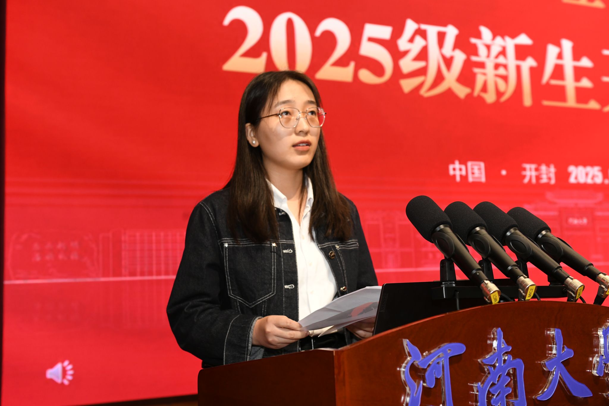 在校生代表、2024级物理学专业研究生司鹏丽分享感悟,叮嘱新生保持开放包容心态,在协作中收获友谊,在校园活动中丰富成长体验。