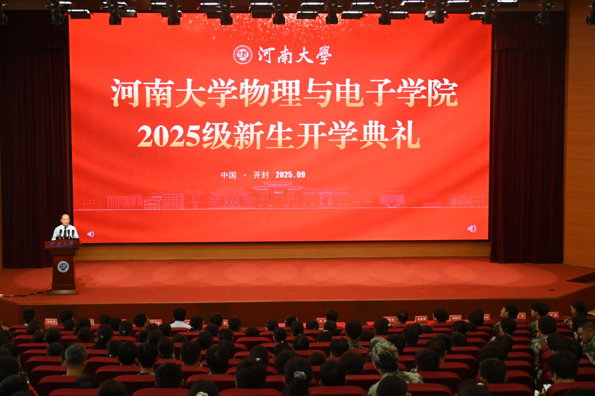 2025级新生开学典礼在金明校区图书馆一楼报告厅举行。学院领导班子、各系室主任、教师代表、各年级辅导员与2025级全体本硕博新生齐聚一堂,共同见证这一重要时刻。典礼由学院党委副书记刘寒冰主持。