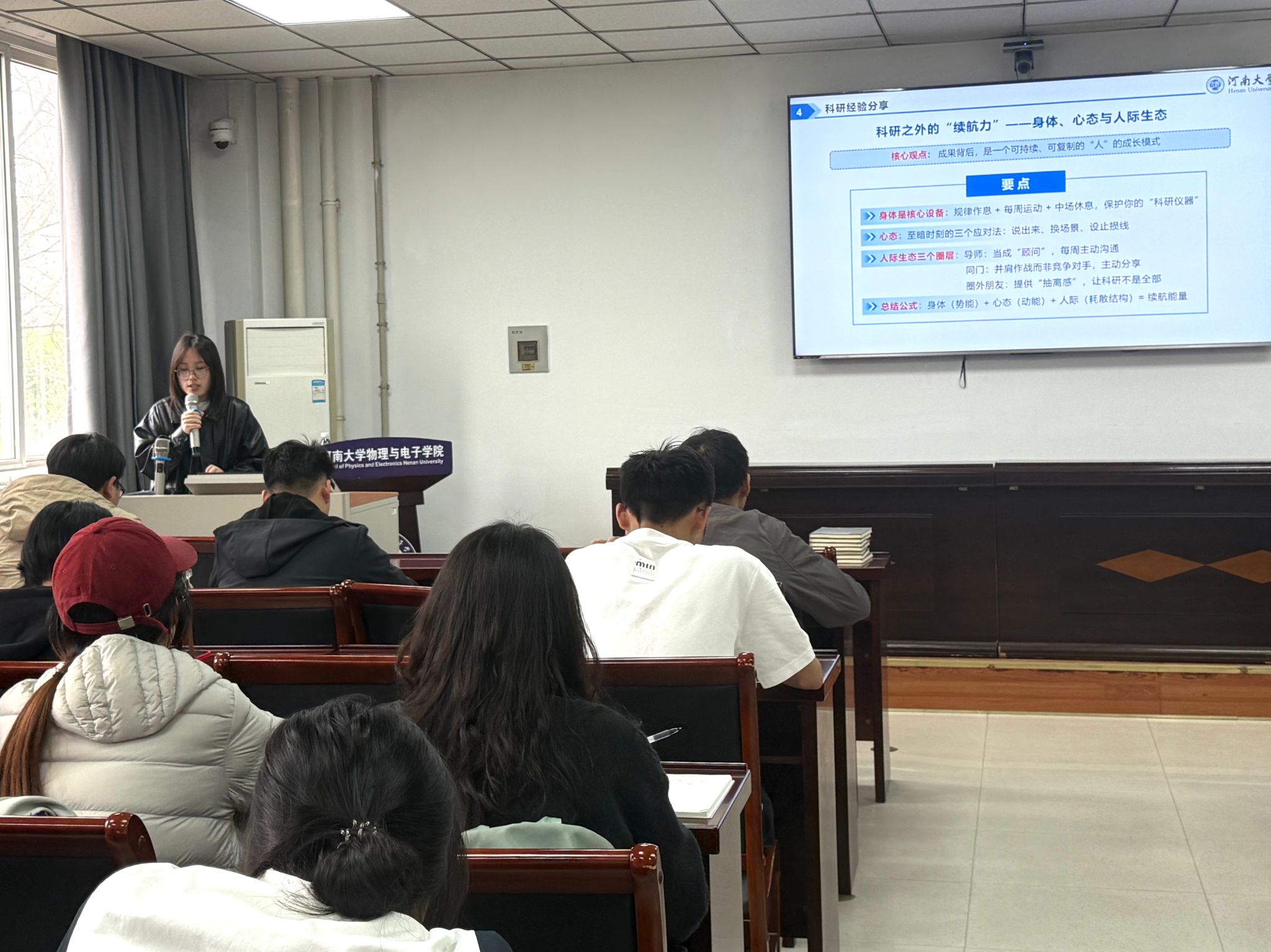 为搭建研究生学术交流平台,传承科研与学习经验,引导广大研究生高效开展科研工作和合理规划学术生涯,4月2日,学院研究生会在A313会议室举办“格物穷理共进,学术之路同行”主题学术分享交流会。活动邀请获得2025年国家奖学金的博士研究生李明星、硕士研究生刘梦冰和刘光延为大家分享科研与写作经验,学院团委书记周焕、研究生辅导员王翠苹出席会议并与同学们进行交流。