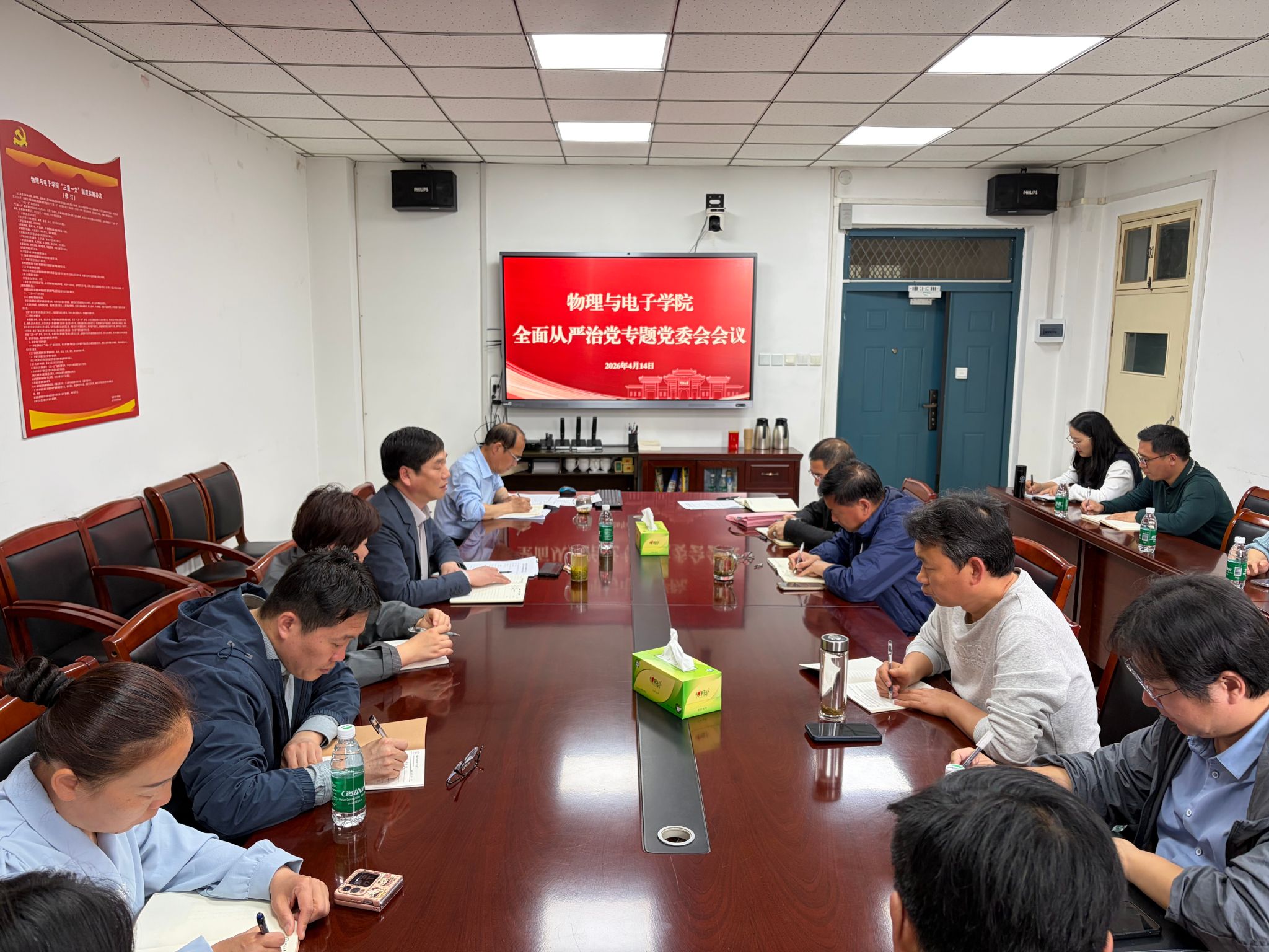 在A311会议室召开全面从严治党专题党委会会议。学院党委委员、党政班子成员、各支部书记、系室主任参加会议,学院党委书记张慧主持会议。