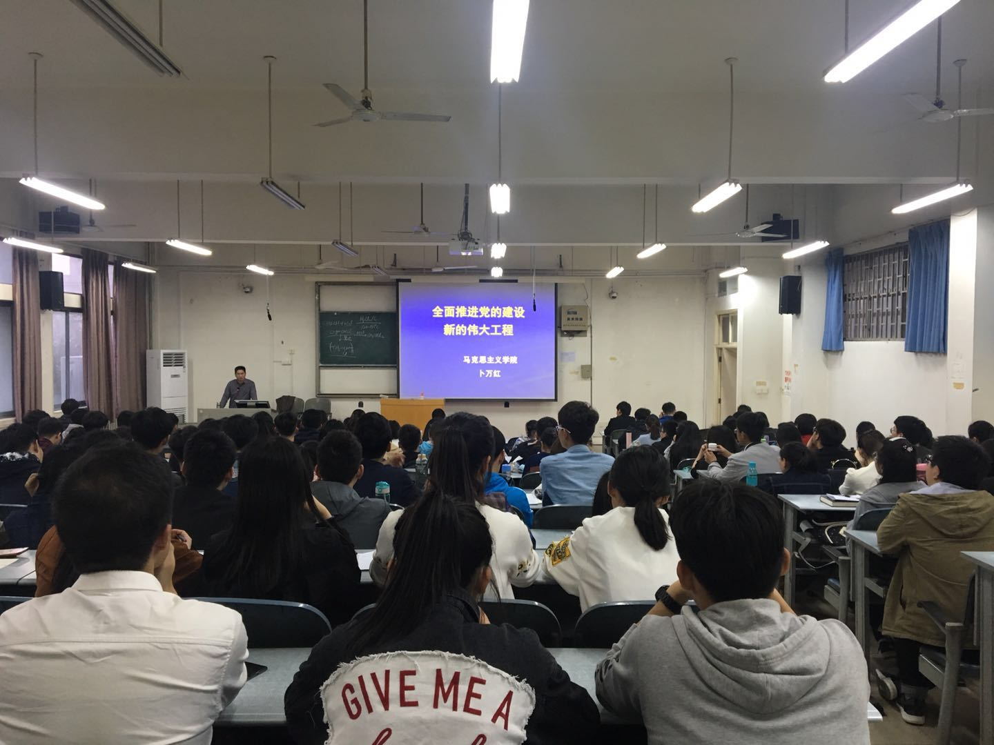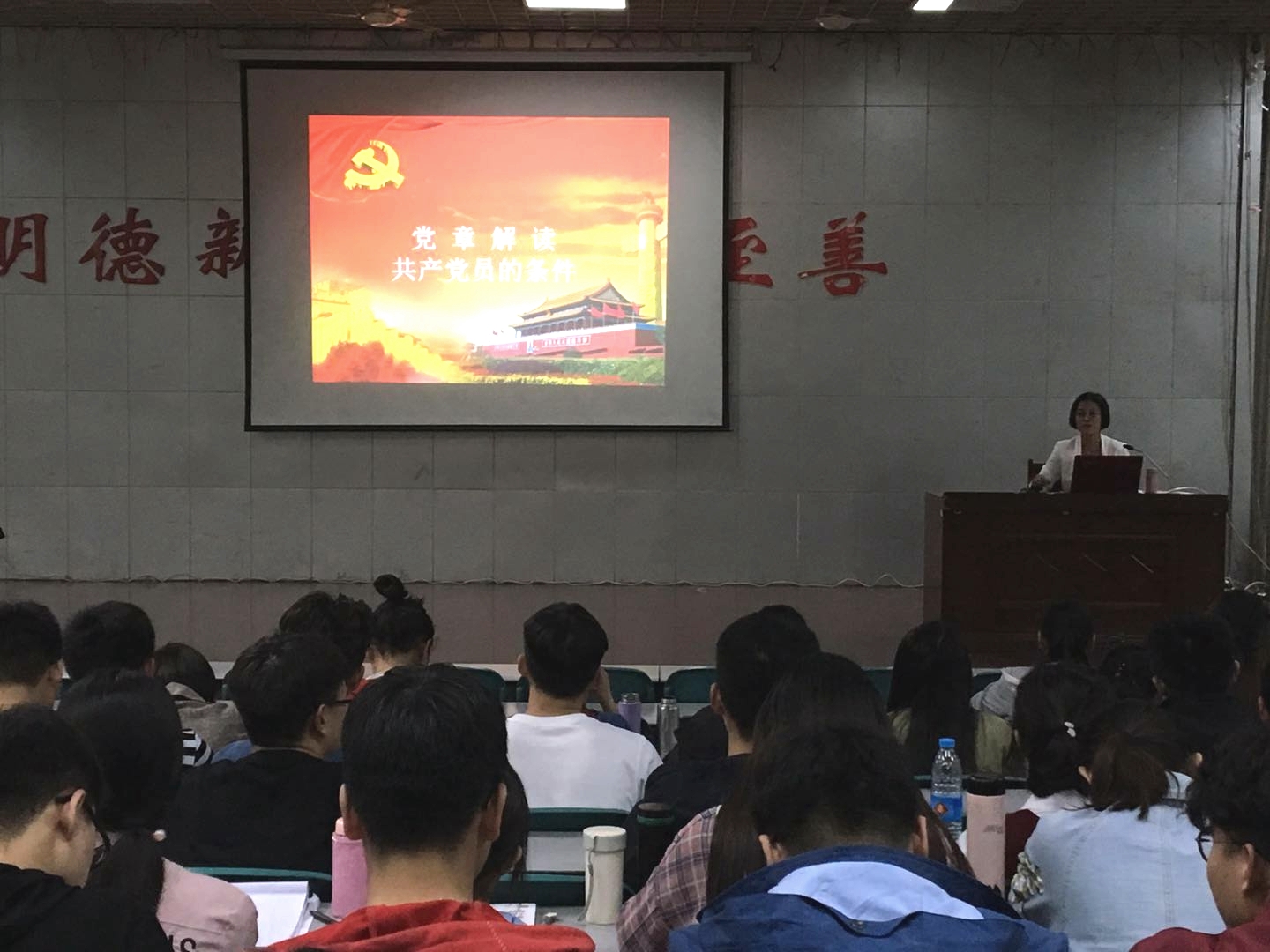 党课培训班纪律要求》并对相关事宜进行安排。院党委副书记乔石豪以《延安精神及其时代价值》为主题进行第一讲,他从共产党的宗旨入手,重点讲述了青年学生入党的目的动机以及如何把延安精神与大学生思想教育结合起来。随后,马克思主义学院副教授刘德定讲授《深入学习十九大精神和习近平新时代重要思想》、马克思主义学院副教授卜万红讲授《全面从严治党的重大成就与基本经验 》、纪检监察员张秋梅讲授《党章解读—共产党员的条件》、党办主任刘寒冰主讲《正确履行入党程序》、学院团委书记李嘉妍主讲《党的基础理论知识》。