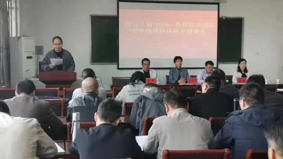B座608举行。典礼由学院继续教育办公室主任向兵老师主持。来自全省各个县区的49名初中物理精英骨干教师参加典礼。