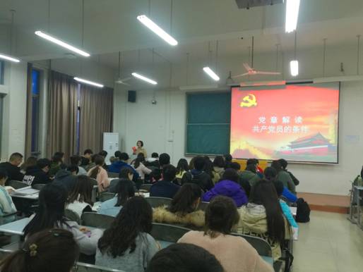 在接下来的党课讲座中,孔瑞婷向学员们讲述了组织发展工作程序,以确保党员质量;外语学院张晓晖老师从投身志愿服务出发,生动诠释了全心全意为人民服务的根本宗旨;校纪委副书记张秋梅老师结合中国共产党党史和党章,解读了一名合格的共产党员的条件;学院党委副书记乔石豪老师从危害国家安全的案例讲起,分析了新形势下国家安全面临的压力和风险,要求所有同学站在政治高度上,维护国家安全,打一场新时代维护国家安全的“人民战争”;学院党委副书记、院长王渊旭老师以自身求学、科研经历为例子,向所有积极分子讲述了如何培养政治素养和创新精神。