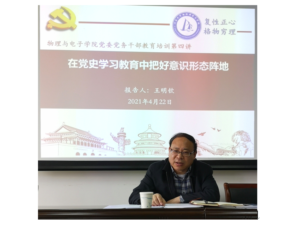 王明钦以《在党史学习教育中把好意识形态阵地》为题,联系当前正在进行的党史学习教育,结合习近平总书记视察清华大学时的讲话精神,介绍了省委书记王国生来JAV777 与师生座谈交流情况,强调在党史学习教育中要悟思想、办实事、开新局;在党史学习教育中把好意识形态阵地,党务干部要不断提高政治判断力、政治领悟力、政治执行力,敢于担当,善于作为。