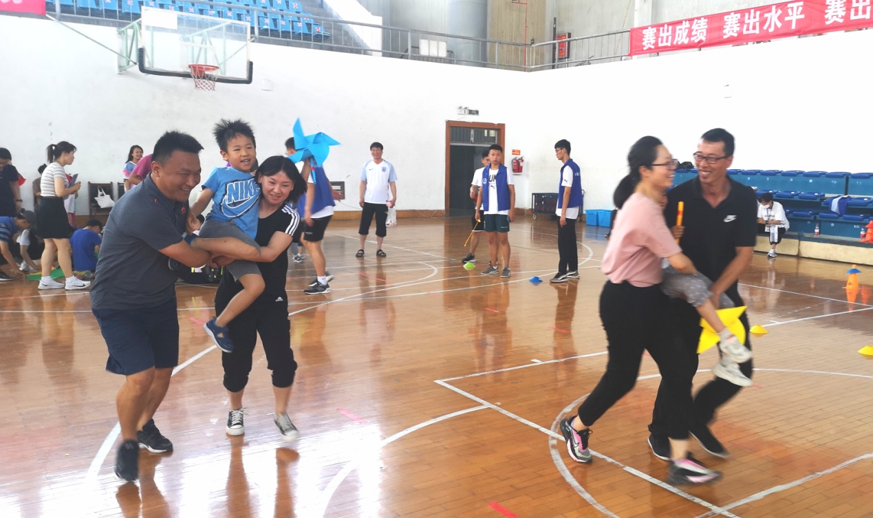 体育学院篮球馆,物理电子学院、体育学院联合举办以“少年强身健智 向党百年献礼”为主题,“身体活动”与“大脑启智”相结合的亲子游艺活动。两个学院相关领导、教职工及其子女100余人参加亲子活动。
