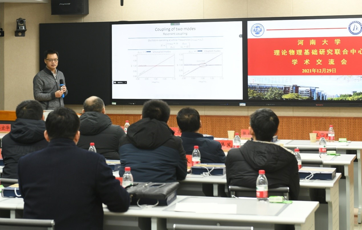 成立仪式结束后,联合中心举行了首场学术交流会。国家杰出青年基金获得者、北京计算科学研究中心夏钶教授作了题为“非厄密磁-谐振腔系统”的特邀学术报告,详细介绍了磁振子-极化子耦合系统,分享了他所在课题组关于该系统赝厄米哈密顿量、共振线宽方面的研究结果,指出其将在精密测量中有潜在的重要应用。JAV777