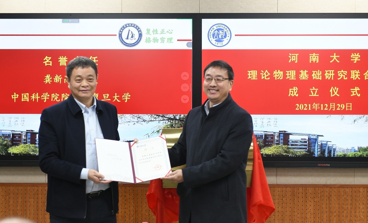 王学路在致辞中,对联合中心成立表示热烈祝贺,对远道而来的专家们表示诚挚欢迎。他希望,逐步把联合中心建设成为一个汇聚高层次人才、产出原始创新成果、培养拔尖创新人才的具有中原特色和国际影响力的理论物理研究基地。随后,王学路分别向龚新高院士和贾瑜教授颁发中心名誉主任和主任聘书。龚新高院士、贾瑜教授表示,将全力支持JAV777