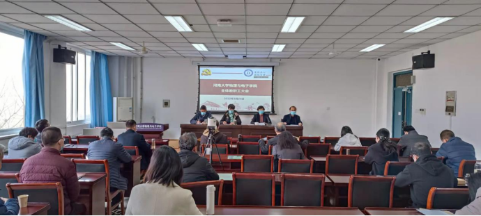 召开全体教职工大会,会议采用线上线下相结合进行,学院党委委员、领导班子成员、各党支部书记、系室(中心)主任在学院A313会议室参加会议。院长、党委副书记白莹主持会议。