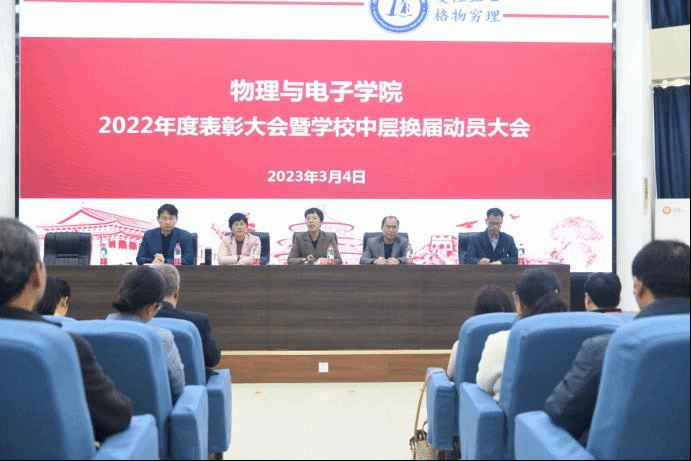 本次会议分为2022年度学院表彰、学校中层换届动员、2023年新学期工作部署三个阶段,并依次进行。