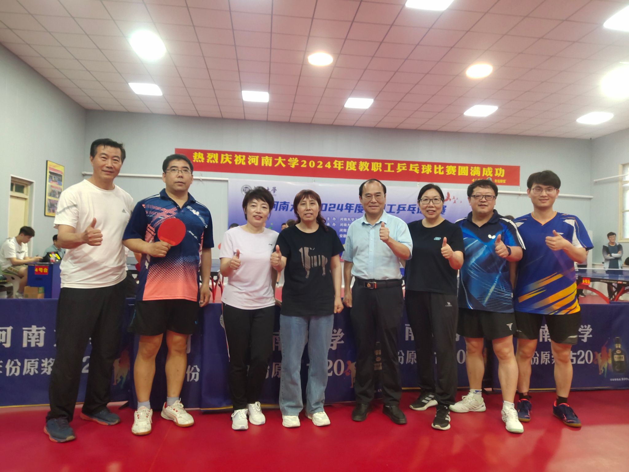 乒乓球队在学院党委书记张慧、副书记兼工会主席刘寒冰的带领下,各位选手团结协作、顽强拼搏,不畏强手、奋力冲杀,经过激烈角逐,取得佳绩!向兵、王孟禄分别获得男子单打第三名和第四名,男女混合团体获得冠军,这是继2021年获得冠军后再次卫冕冠军,刷新JAV777