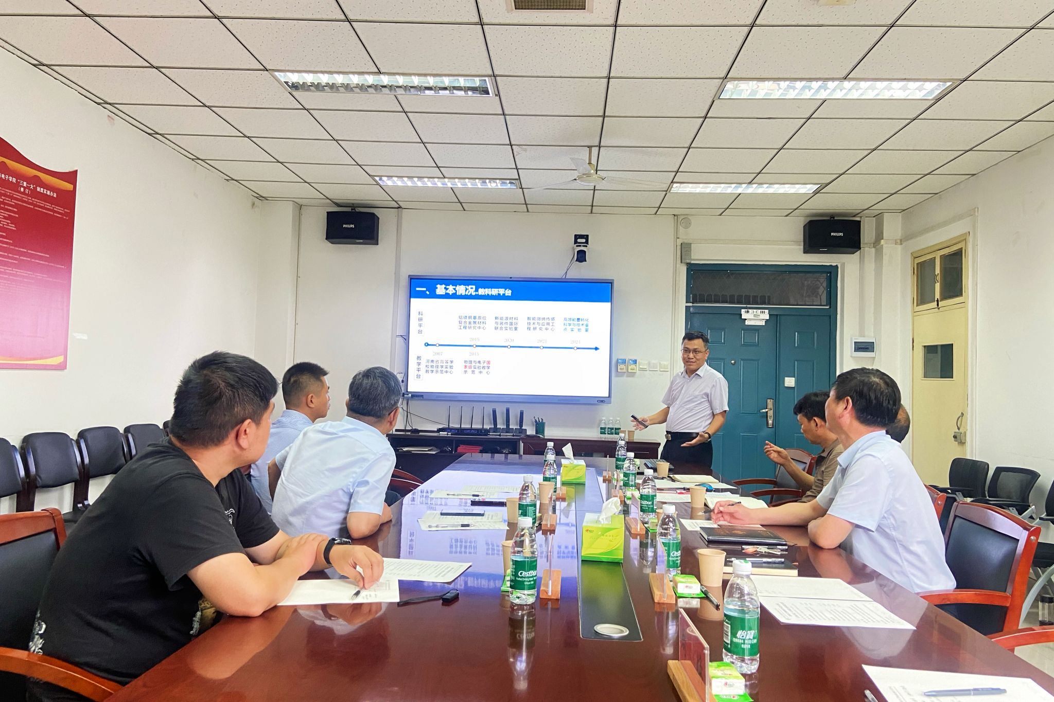 的办学历史、发展状况及办学新目标,希望双方以此次交流为契机,加强交流合作,互相借鉴学习,共同推动两个学院事业高质量发展。李国强就学院基本情况、发展现状与学科建设进行了详细介绍,李新营重点讲了研究生的培养。刘寒冰介绍了学院党建及学生管理工作,强调了党建工作在学院发展和学生管理中的核心作用。王春雨介绍了扬州大学基本情况,并从人才培养、项目申请和学科发展等方面介绍了物理科学与技术学院。