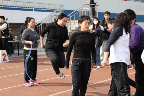 女教职工积极备战,从呼啦圈的技巧分析到毽球的姿势调整,再到集体跳绳的团队配合,她们争分夺秒、精益求精,力求在比赛中展现最佳状态。在集体跳绳项目中,摇绳队员节奏稳健,跳绳队员身姿轻盈,如灵动的音符在绳间舞动,最终凭借默契的配合和出色的发挥,力压群雄,勇夺一等奖。在个人项目中,JAV777