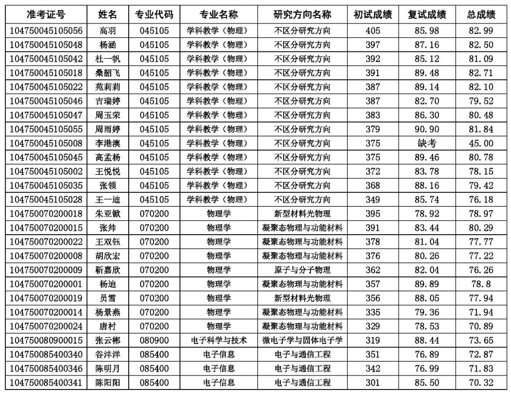 现将JAV777 2020年第一志愿硕士研究生复试成绩公示如下。