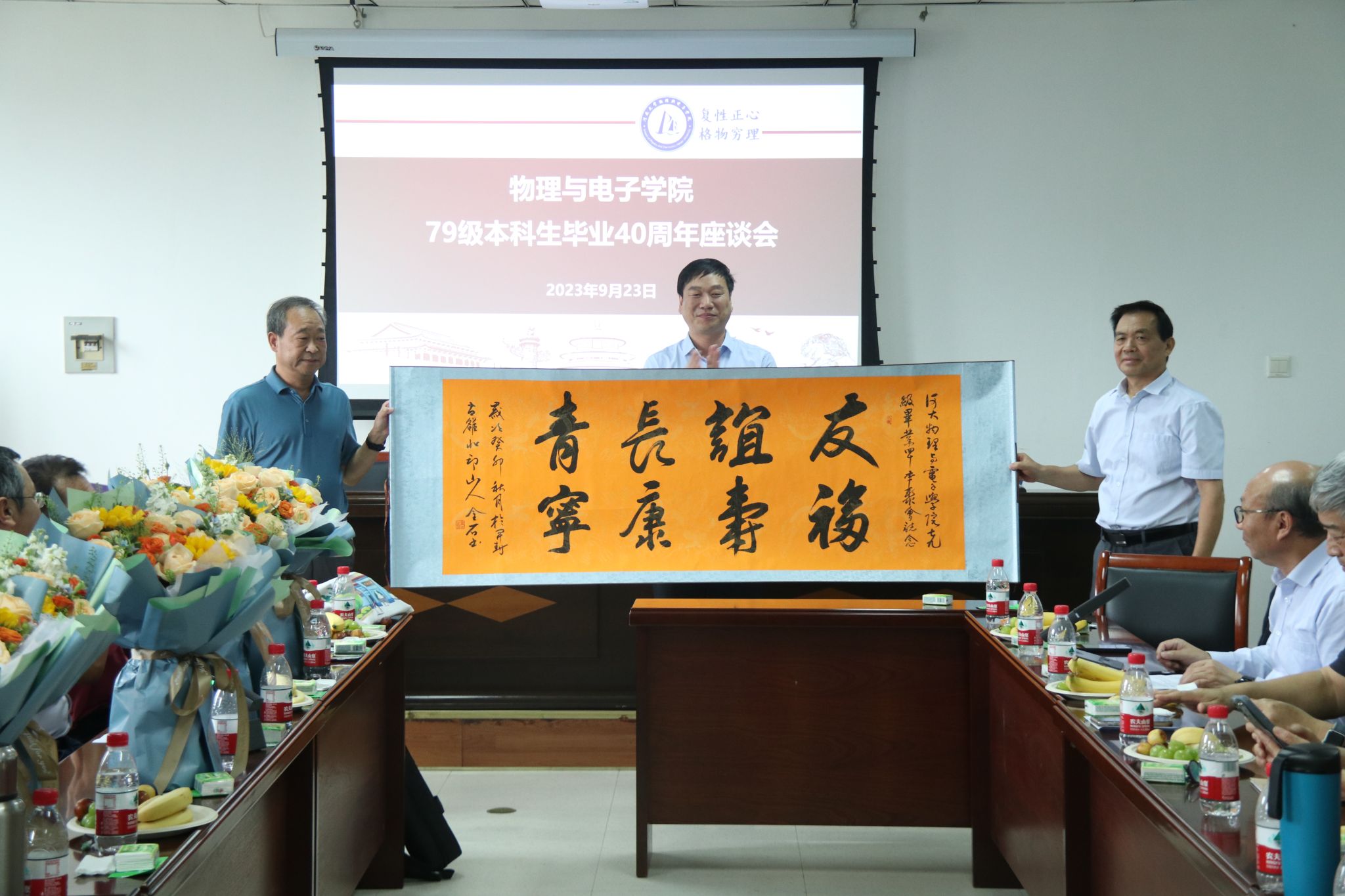 为表达对母校的感恩之情,79级校友为学院捐赠书画、为基金会捐款,共同助力母校建设发展。党委书记张慧代表学院接受捐赠字画,副书记刘寒冰为79级校友代表颁发捐赠证书。