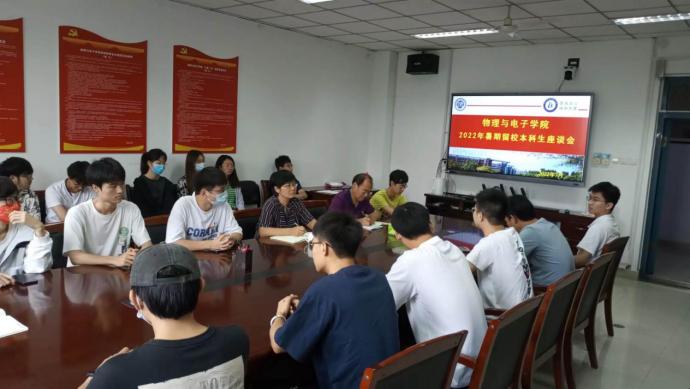 白莹首先详细询问了大家留校期间的学习、生活等方面的情况,对大家提出的问题进行了记录,并表示学院将竭力解决大家暑期留校过程中遇到的各种困难,对于共性问题将会向学校反馈解决,为大家安心留校保驾护航。座谈会上,同学们积极为学院下阶段优化培养方案、课程设置、评先奖优、学科竞赛等方面献言献策。刘寒冰、李新营针对大家在学业上存在的困惑逐一解答。白莹对大家在座谈会中开诚布公的态度以及诚恳的意见和建议表示感谢,对大家不畏高温酷暑努力学习的拼搏精神表示赞扬,同时她也对大家提出了几点希望,一要充分利用好假期这段宝贵的时间,脚踏实地、奋发向上,做到假期期间学习“充电”不停歇;二要牢固树立安全意识,在严格遵守学校疫情防控措施同时,做好安全防护,确保个人人身安全;三要注意劳逸结合,坚持每天锻炼一小时,增强体质,丰富学习生活。随后,院领导班子为与会学生发放了学院精心准备的慰问品。同学们纷纷感谢学院的关心和帮助,表示将会遵守学校各项规定,注意安全,合理规划、努力学习,度过一个充实、有意义的假期。