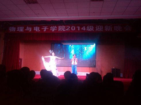 在晚会正式开始之前,王宏华首先代表我院全体教职工向2014级新生加入物理与电子学院这个大家庭表示热烈的欢迎,并对新生们提出了学习、生活的期望,祝福他们在物理与电子学院度过快乐幸福的大学生活。