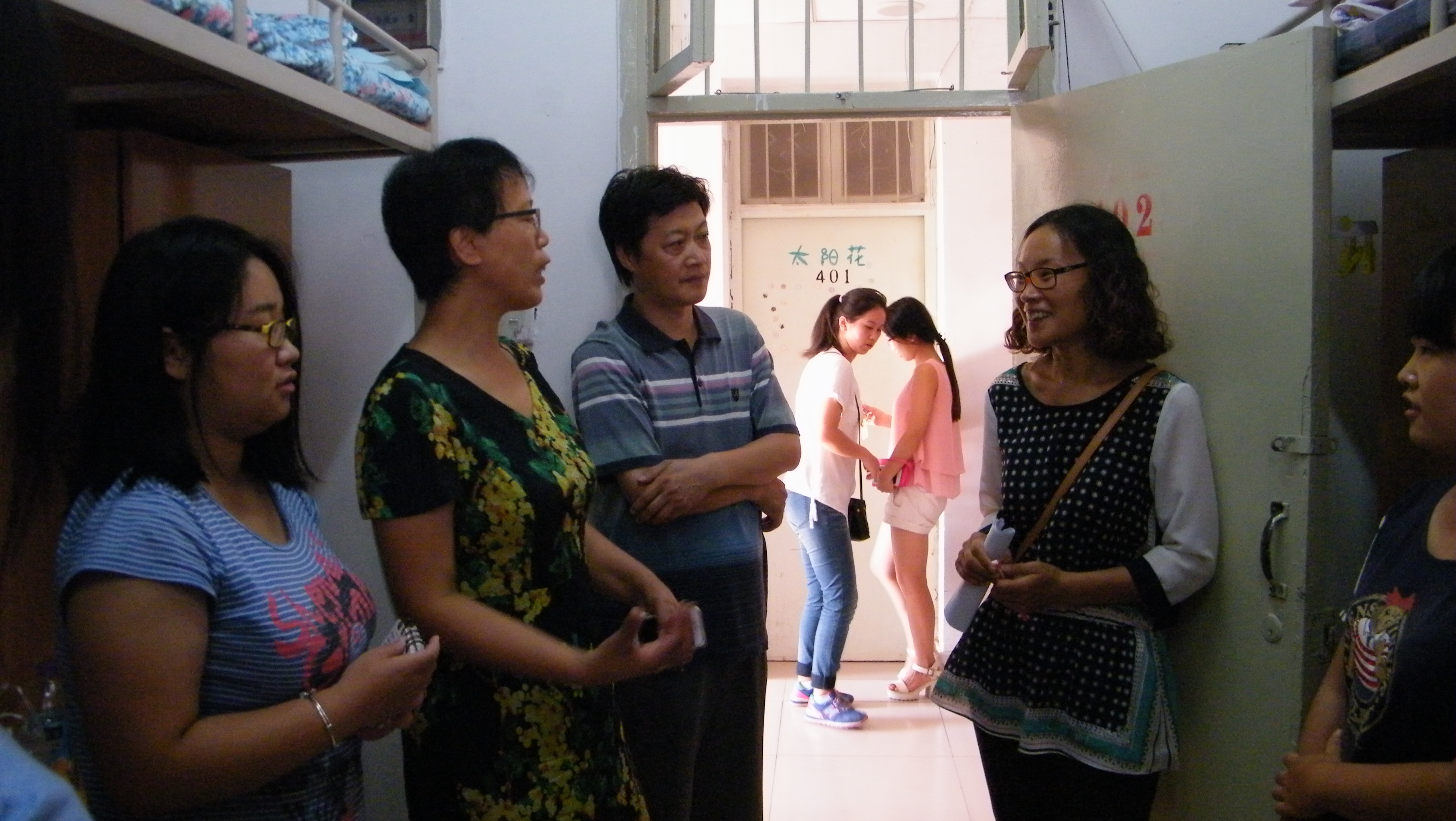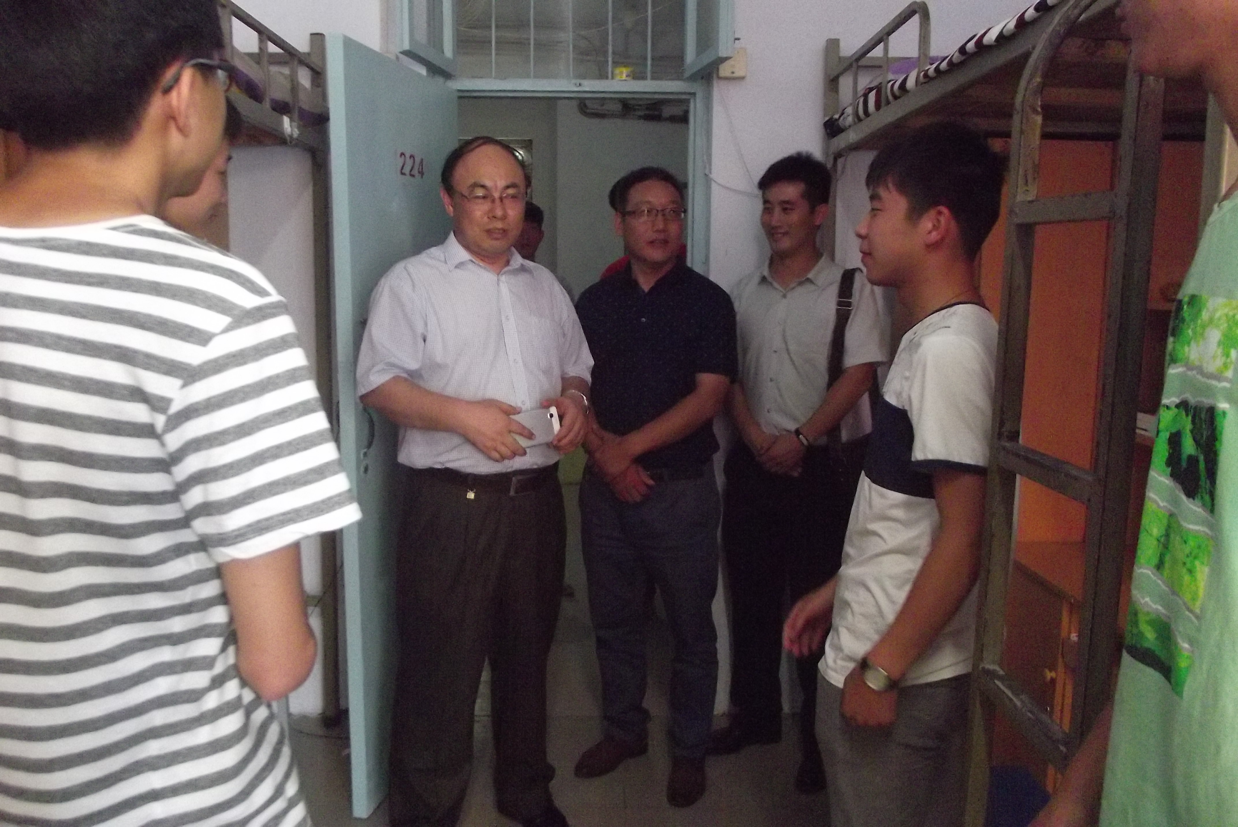 关怀致新生,初秋送温情!9月2日下午,我院党委书记王宏华,院长顾玉宗,副院长夏晓智、邱永宽,团委负责人郭淼,2015级新生辅导员解庆艳等领导老师,分赴学生宿舍11、12、13号楼走访看望刚刚入学的2015级新生,详细了解新生对住宿、生活等方面的适应情况,并亲切地与新生进行了交流和沟通。