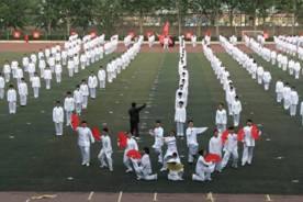 精彩的太极拳表演背后是物理与电子学院学子们的共同努力,他们曾冒着清晨凛冽的寒风,也曾顶着正午毒辣的烈日,在训练场上认真琢磨每招每式。那些伴着清晨寒气、正午骄阳和黄昏彩霞的练习,使得选手们的动作一天天娴熟,队伍一天天趋于整齐,最终成就了行云流水、百人如一的境界。也正是太极,让大家有了一个共同的目标,为了同一份荣誉团结在一起。