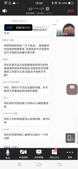 在互动环节中,同学们踊跃在线提问,校友的风趣幽默与真知灼见不时赢得大家的阵阵掌声,同学们纷纷结合自身的疑问向校友取经,现场气氛十分热烈。论坛进一步解答了就业创业过程中碰到的实际问题,帮助学生拓宽就业创业视野,明确职业目标和规划,为同学们就业和创业提供了有效指导。