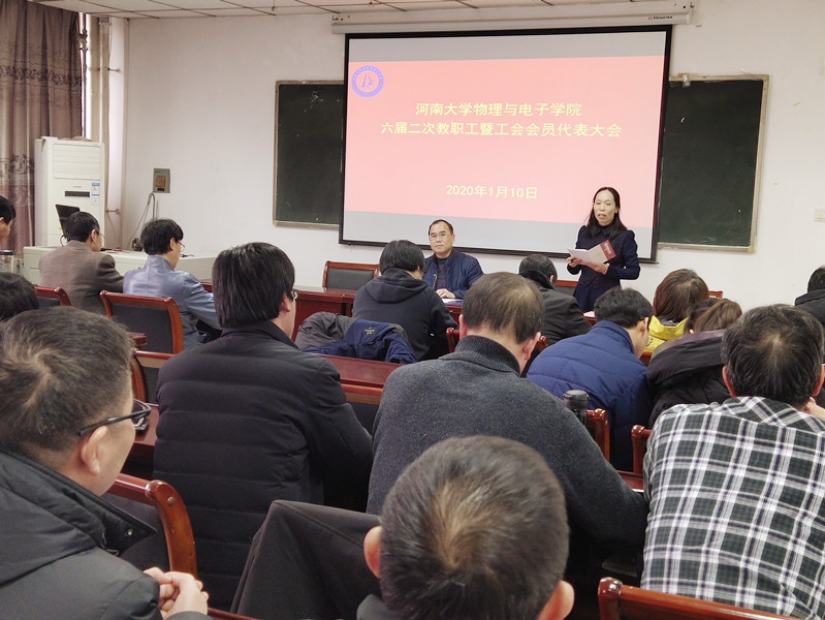 1月10日下午,物理与电子学院六届二次教职工暨工会会员代表大会在物理与电子学院B楼608会议室召开。学院正式代表及列席代表共57人出席大会,会议分为三个阶段,分别由学院党委书记王宏华和工会主席刘寒冰主持。