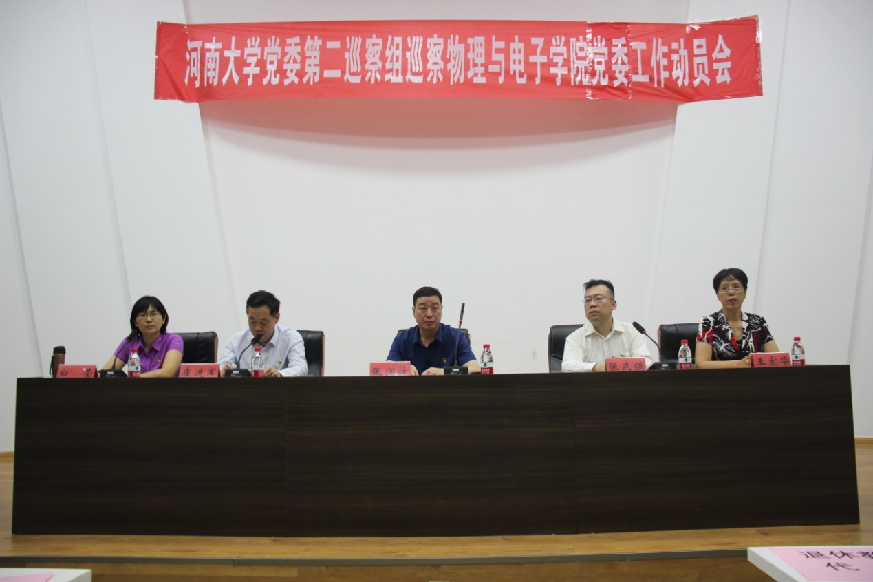 根据学校党委统一部署,5月27日下午,校党委第二巡察组召开巡察物理与电子学院党委工作动员会。会前,校党委巡察工作领导小组成员、校纪委副书记张润泳主持召开与物理与电子学院党委书记王宏华,党委副书记、副院长白莹的见面沟通会,第二巡察组组长崔进军通报了巡察任务和工作安排。会上,张润泳就做好巡察工作提出了明确要求,崔进军通报了巡察工作的主要任务、总体安排和工作要求等,党委巡察工作办公室副主任张东强宣读了《关于中共河南大学第十一届委员会第二轮巡察组长、副组长授权任职及任务分工的通知》,王宏华作表态发言,白莹主持会议。第二巡察组全体成员、学院全体教职员工、光伏材料省重点实验室全体教职员工、退休教职工代表及学生代表参加了动员会。