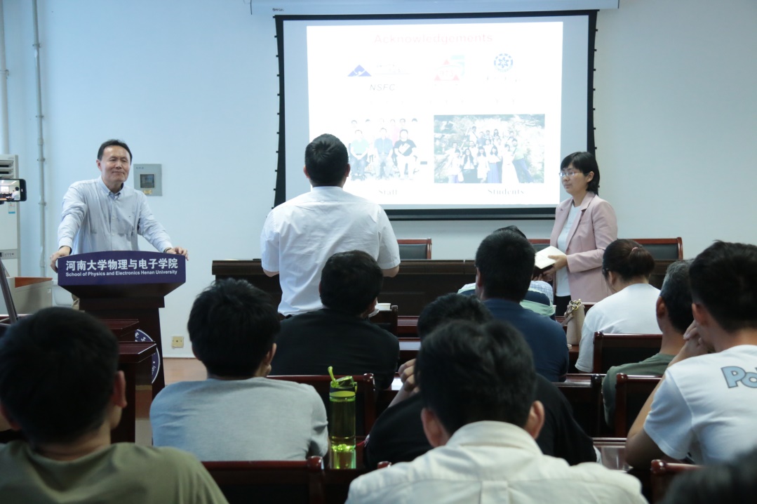 5月12日,应我院邀请,中国科学院长春应用化学研究所林君教授、吉林大学电子科学与工程学院宋宏伟教授在物理学院A313会议室分别为我院师生做了题为“近红外光控多功能光学材料的生物医学应用”和“钙钛矿发光/光电器件中的光谱调控”的学术报告。报告会议由物理与电子学院党委副书记、副院长白莹教授主持,学校相关研究方向的教师和研究生50余人参加了报告会。