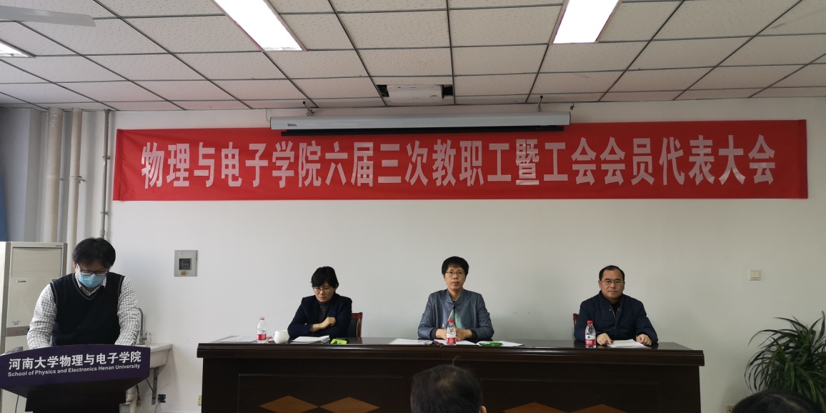 1月14日下午,我院六届三次教职工暨工会会员代表大会在物理与电子学院A楼313会议室召开。学院正式代表共59人出席大会,学院党委书记王宏华主持会议。