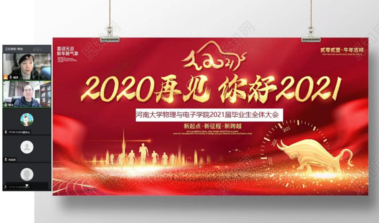 刘寒冰传达了12月1日“2021届全国普通高校毕业生就业创业工作网络视频会议”和12月29日我校2020年毕业生就业创业工作会议精神,指出了2021年全国高校毕业生就业形势和我院近几年毕业生的就业创业情况。他结合学院实际,着重分析了我院毕业生毕业后的选择:升学、公务员招考、求职就业、出国深造、应征入伍、基层就业。他鼓励毕业生充分发扬物理人精神,不惧困难、不怕挫折、积极进取,拓宽就业思路,以创新创业带动就业。学院将在实施“精准分类、个性服务”的基础上,继续开展全员就业帮扶工作,积极帮助毕业生解决就业中的实际困难。魏凌老师也结合同学们实际,分享了自己对创业就业的理解与看法。两位老师在新年即将到来之时,循循善诱,鼓励同学们积极思考就业问题并掌握先机、争取优质就业,为2020年疫情防控的实“鼠”不易添上了“牛”转乾坤的一笔,令人精神振奋。