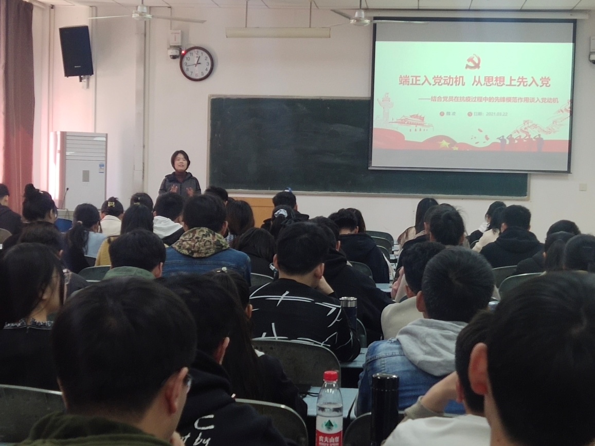 3月18日,开班仪式在金明综合楼6104教室举行。学院党委办公室主任孔瑞婷详细说明了本次培训的课程安排和纪律要求。她讲述的组织发展工作程序,让大家对“双推双评三全程”的入党程序有了更深入的认识。