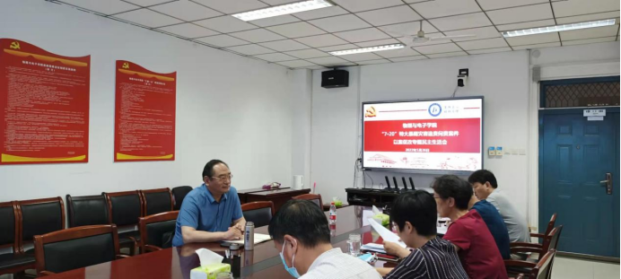 2022年5月26日下午,物理与电子学院党委在学院A311会议室召开“7·20”特大暴雨灾害追责问责案件以案促改专题民主生活会。校党委党委、副校长孙君健出席并讲话,物理与电子学院全体领导班子成员参加了本次会议。会议由学院党委书记王宏华主持。