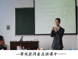 大赛共有来自中南六省相关高校的13位青年教师参加,参赛单位教师代表及我校大学物理任课教师共40余人观摩了比赛。本次比赛内容涵盖2010版《理工科类大学物理课程教学基本要求》中的A类要求,参赛教师现场根据抽签决定具体的讲课比赛内容,每人封闭准备时间为1小时,讲课时间为20分钟。经过激烈角逐,大赛评出了一等奖2名,二等奖6名,三等5名,获得一等奖的选手将代表中南地区参加全国总决赛。