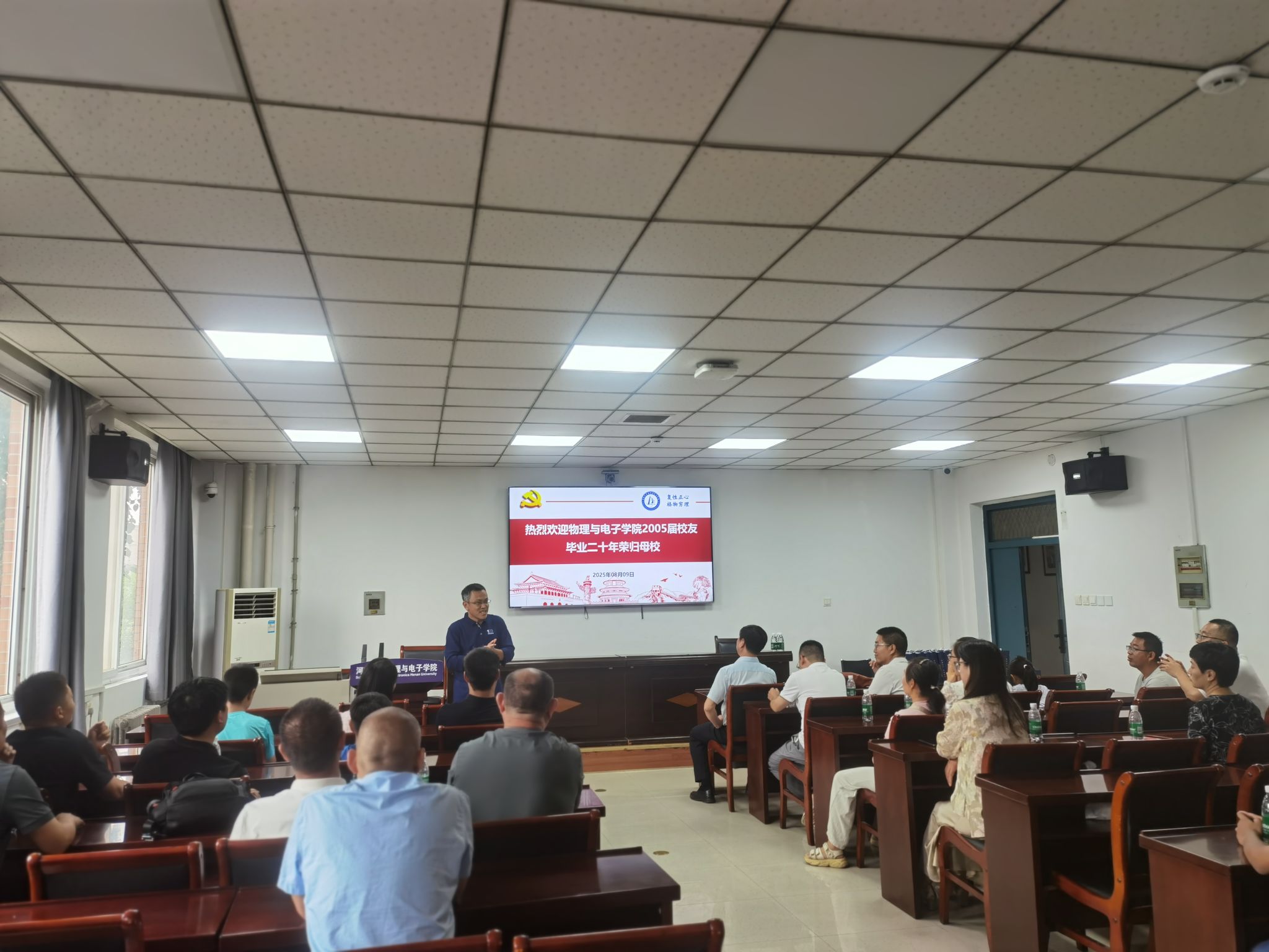 薪火相传廿载路,校友荣归话发展。8月9日—10日,物理与电子学院2005届物理学专业30余名校友从全国各地重返母校,举行毕业20周年联谊活动,共叙同窗之谊,感念师恩之情。学院党委书记张慧、执行院长李国强、党委副书记刘寒冰、辅导员魏凌及专业课教师代表出席座谈会。