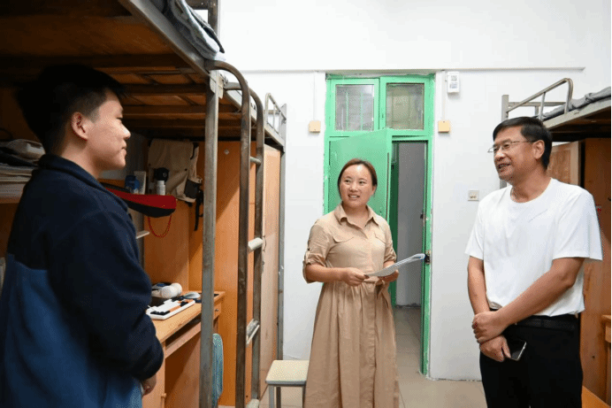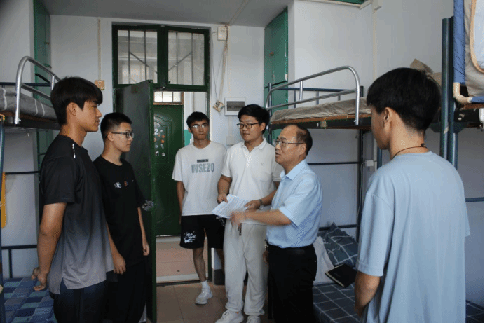 关怀入寝,情暖新生。8月31日,物理与电子学院党委书记张慧、党委副书记刘寒冰、副院长魏高明、副院长李新营及辅导员代表组成慰问组,分赴金明、明伦两校区新生宿舍,开展走访慰问活动。